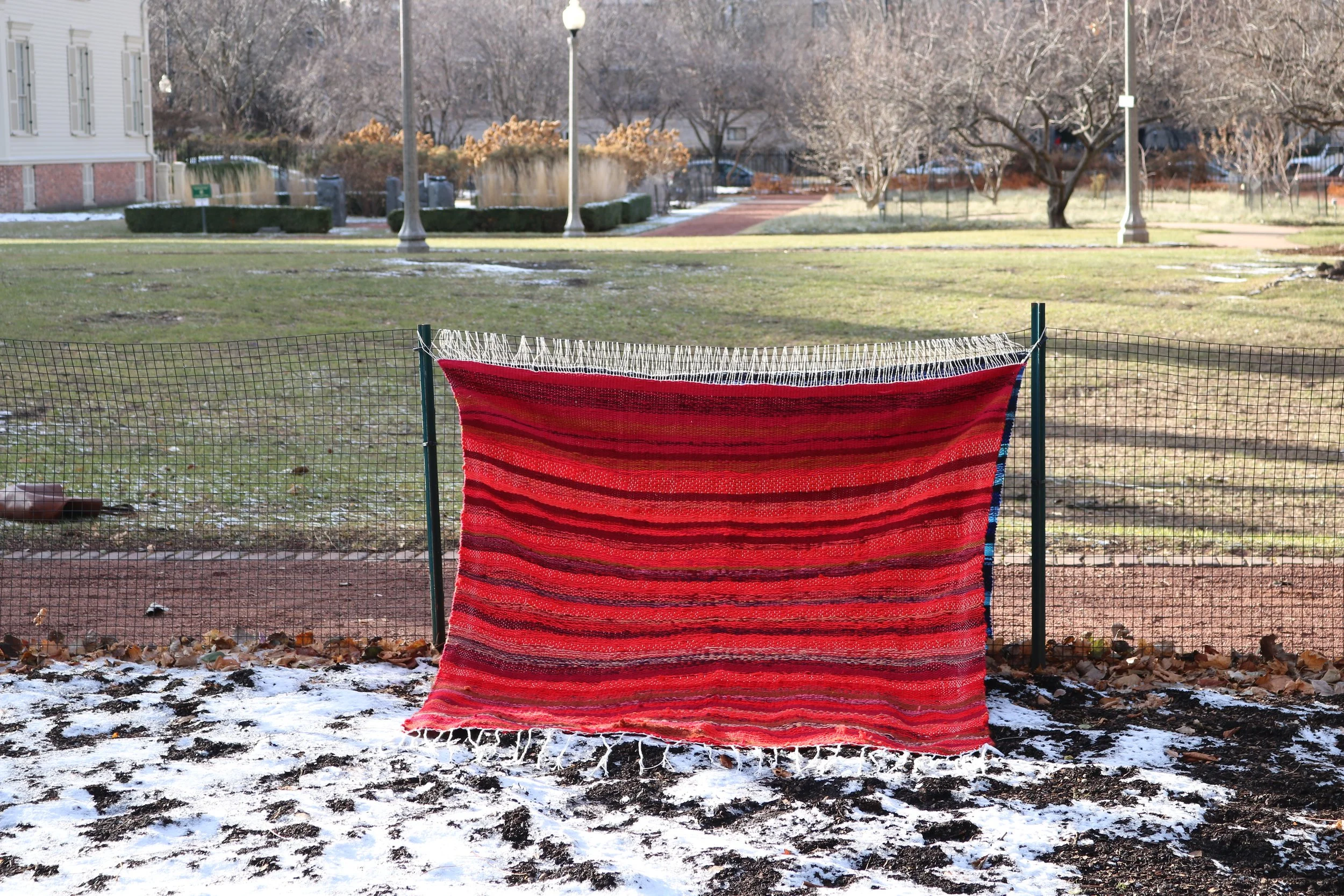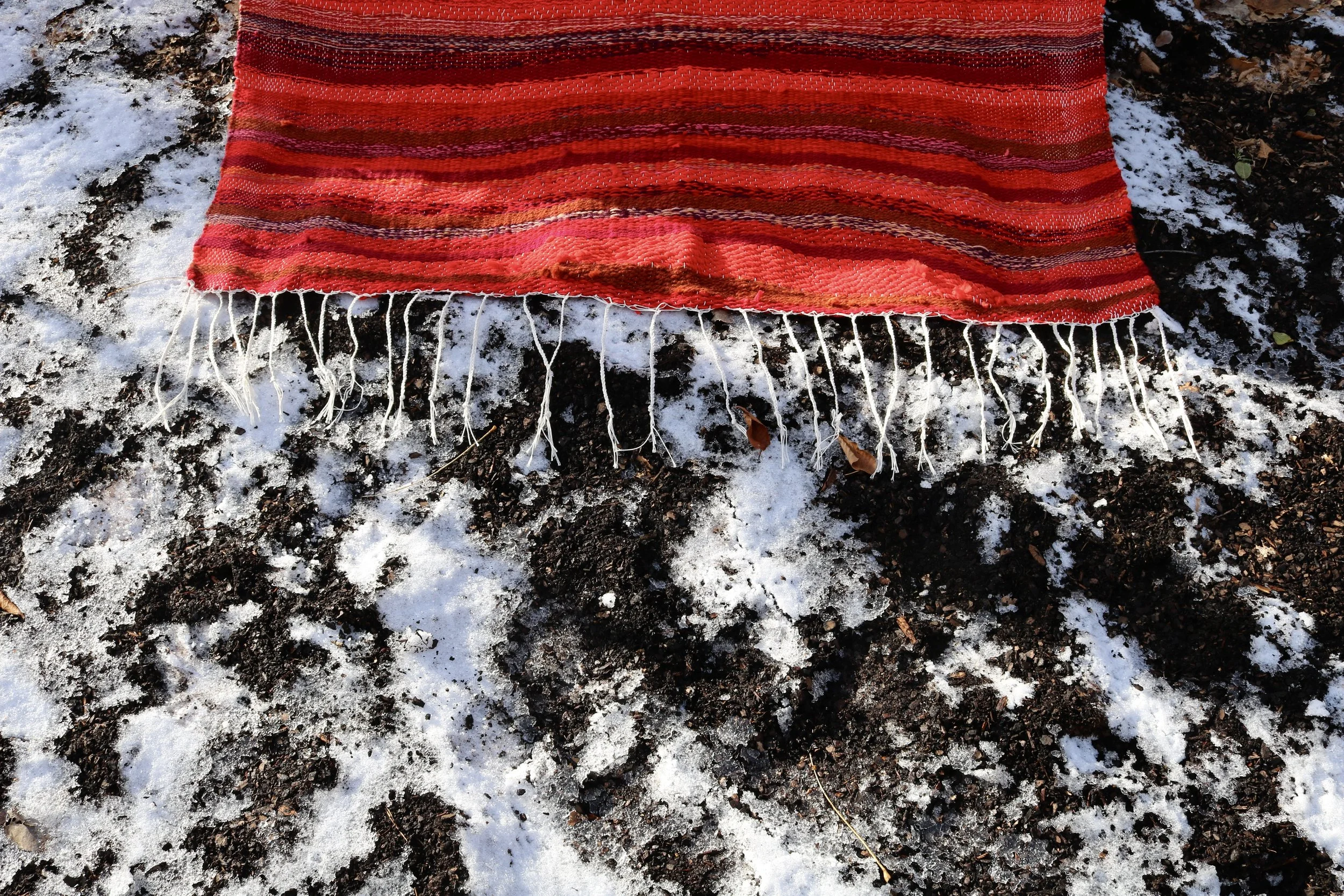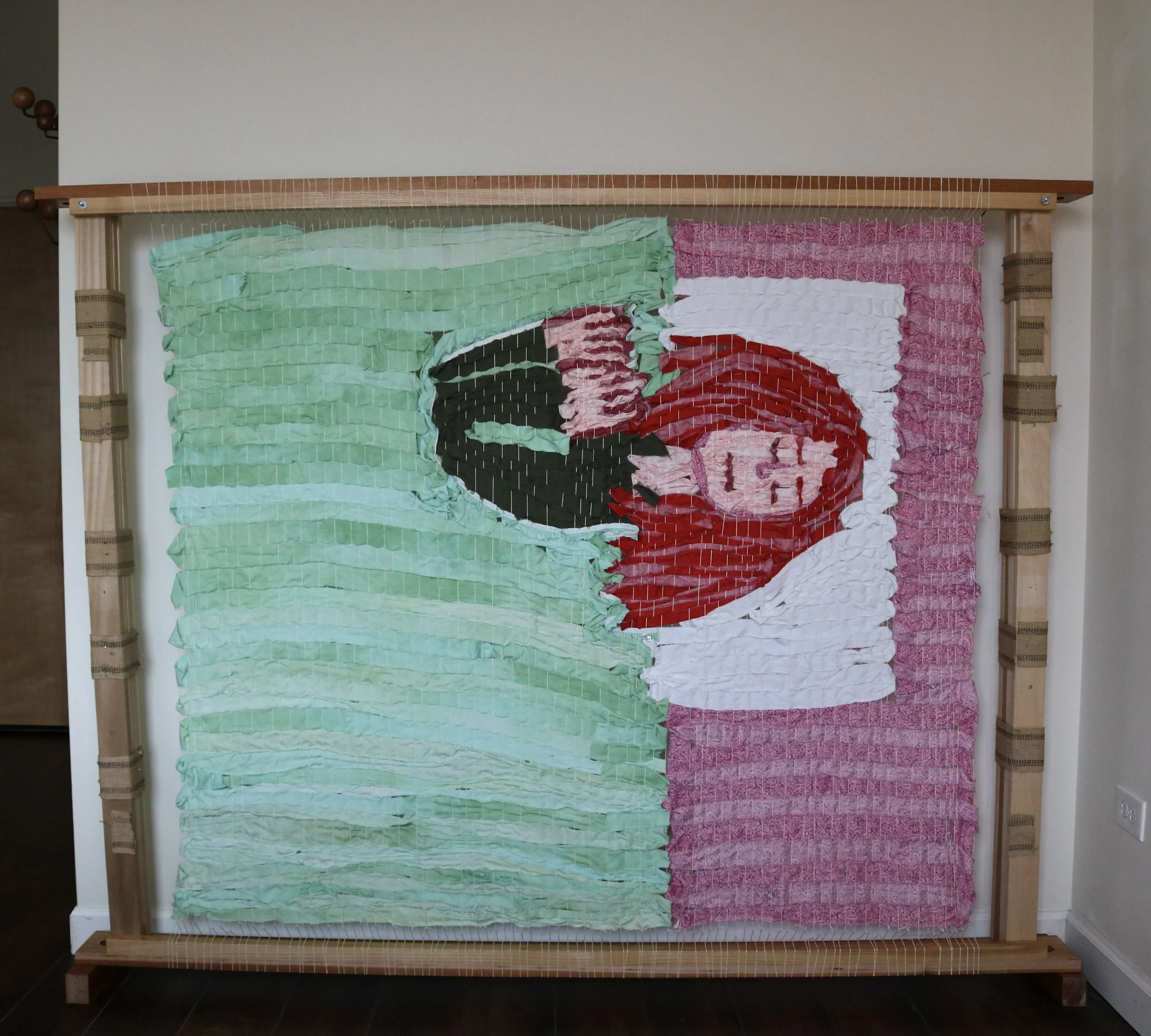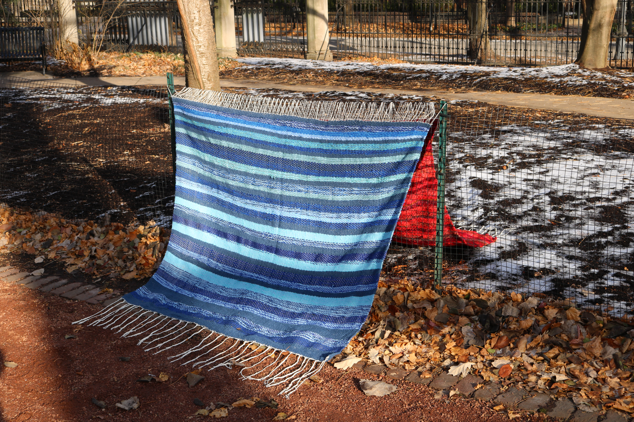 Woven out of old bedsheets and pajamas on the Bed Loom